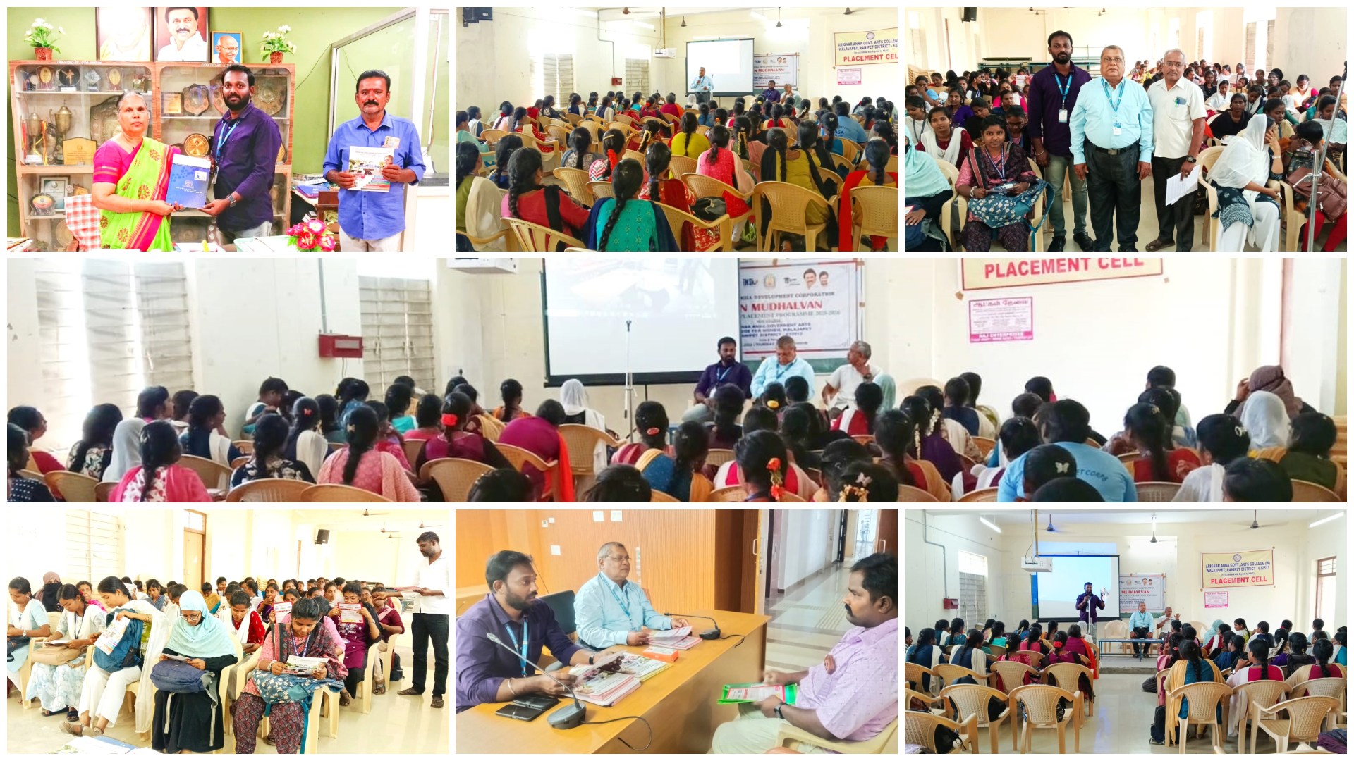 Admission awareness camp for CFTI long-term training courses — Ranipet District Collectorate; around 25 candidates. Awareness session — Arignar Anna Government Arts College; nearly 200 final‑year students; supported by the placement officer.
